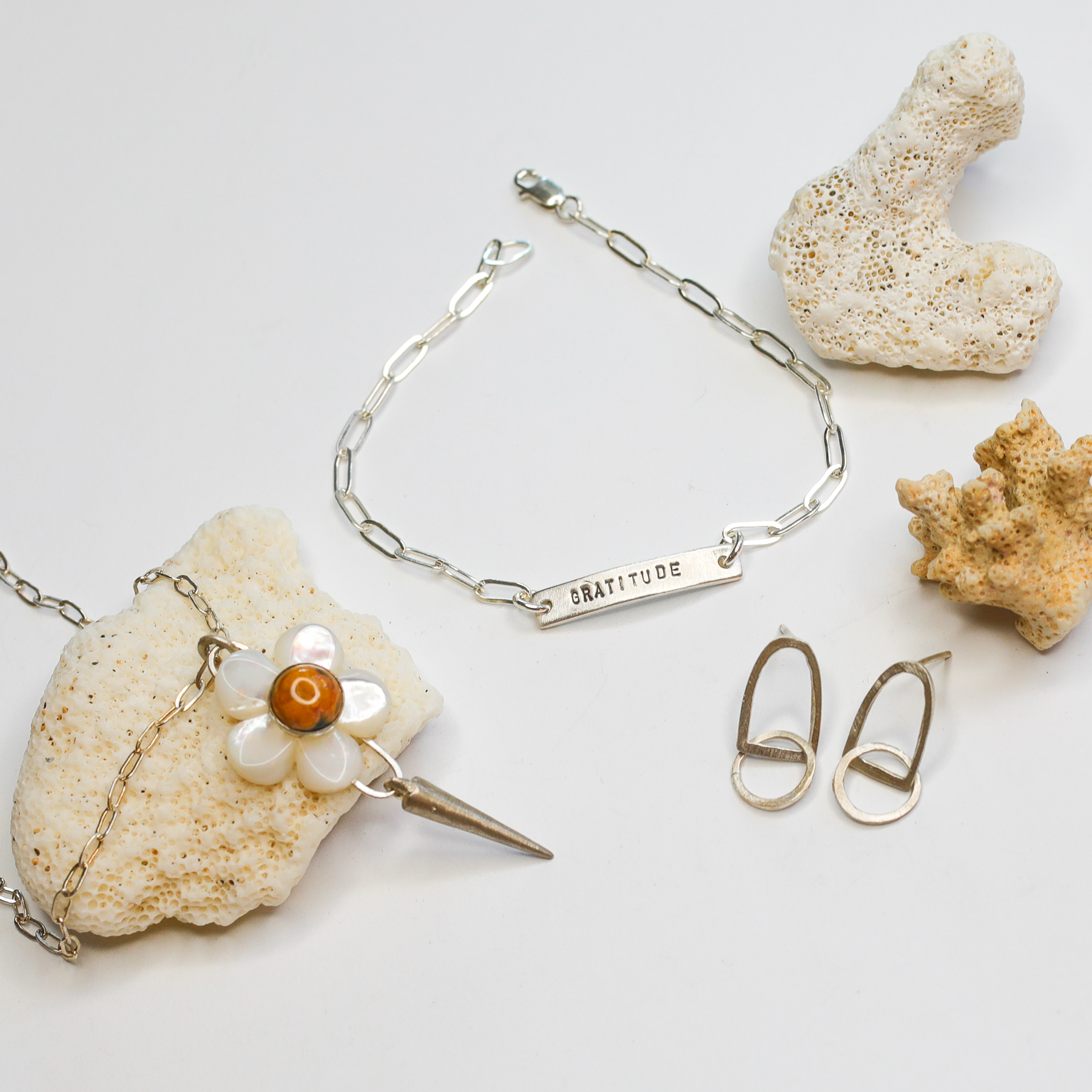 Handcrafted by artisan Christine Street of Chocolate and Steel. Available in recycled sterling silver or 14kt gold vermeil.