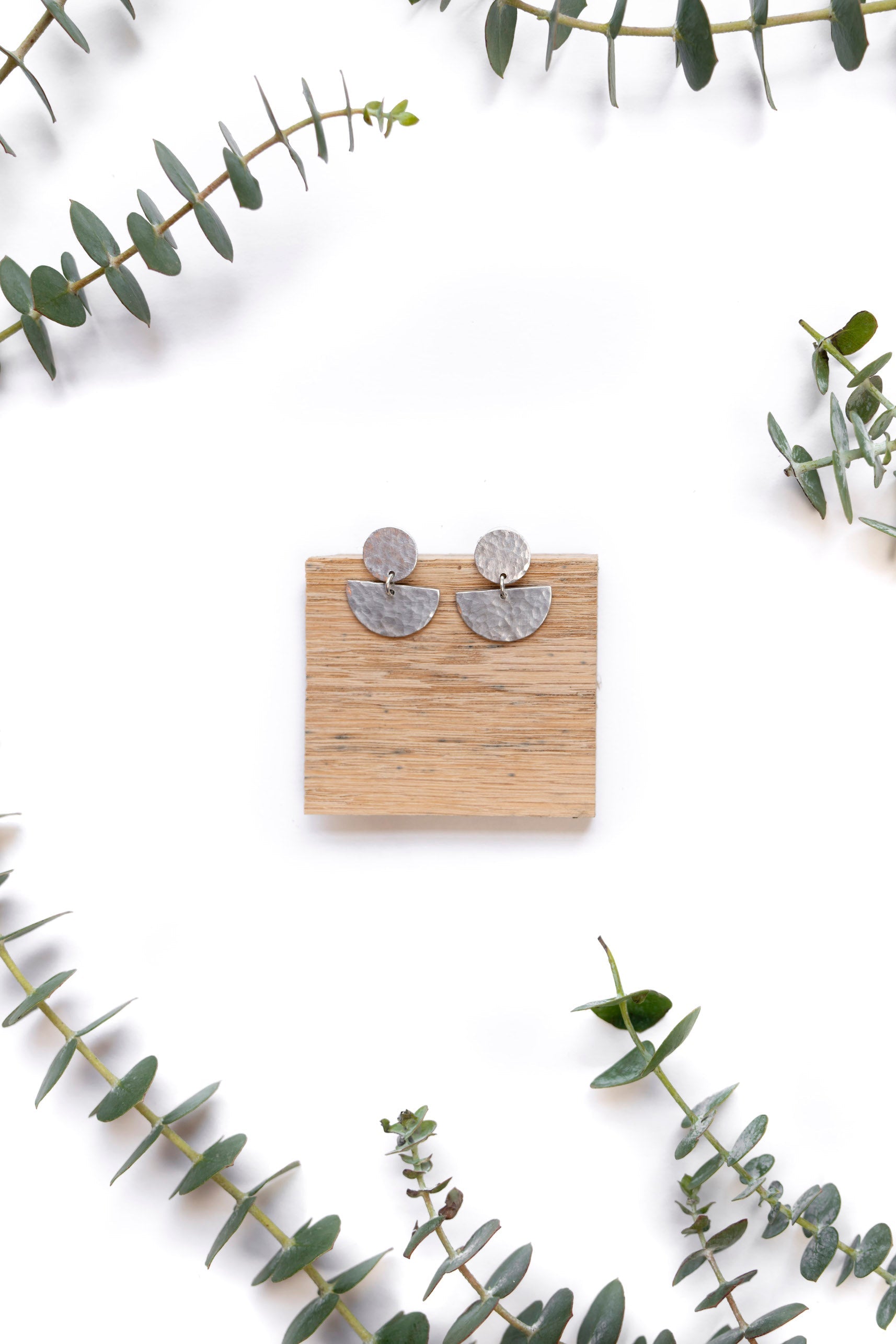 -materials: silver-plated brass earring stud and upcycled aluminum pendant
