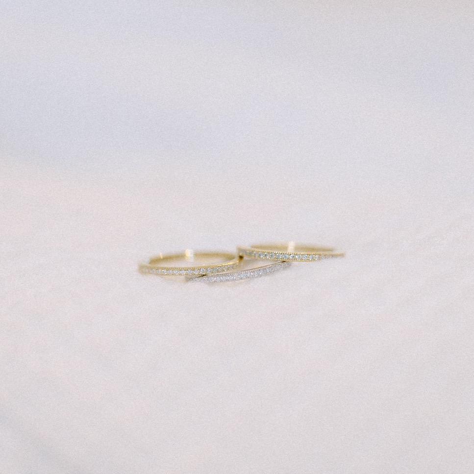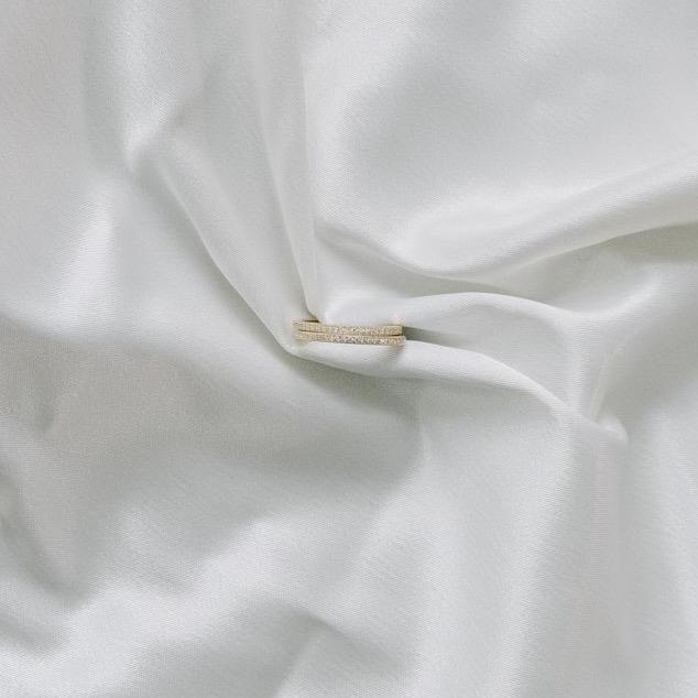 The pave ring is a classic from the Core Collection! It is the perfect every day piece. We think it is fun for stacking or just a simple, subtle shimmer! The thin band gives such an effortless look.